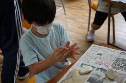 丸くつくった粘土はどんな形になっていくのでしょう。楽しみですね。