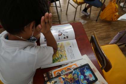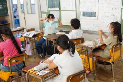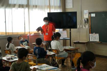 3年1組社会の授業です。沼津の特産物についての学習です。数ある特産物の中で、あじの干物について学んでいきます。明日の干物づくり体験につなげていきます。