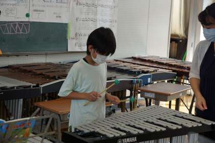 音楽クラブは「チーム学校」実現事業の費用を使って講師の方に指導をお願いしています。