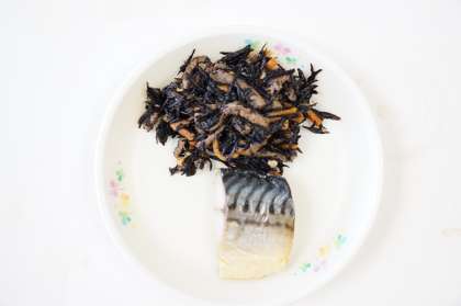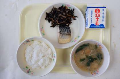 本日の献立は、焼き塩鯖、大豆の磯煮、麩とえのきのみそ汁です。焼き塩鯖は塩加減が良く、脂がのっていてともおいしいです。ごはんが進みます。大豆の磯煮は味付けが良くひじきをたくさん食べることができます。麩とエノキのみそ汁は鰹だしがきいていて味がとてもいいです。