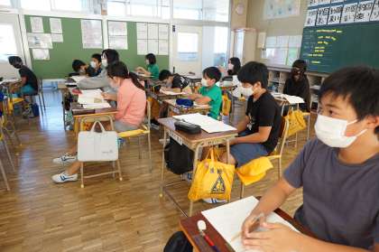 6年2組国語の授業です。きつねの窓の単元です。物語に出てくる三つの窓について考えていきます。本文を根拠に表にまとめます。
