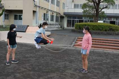 昼休みの様子です。10月12日に実施予定のたてわり運動会に向けて、長縄8の字跳びの練習を行っています。6年生は慣れているのでとても上手です。これからも練習を積んでいき、たてわり運動会に向けて雰囲気を盛り上げていきます。