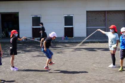 2,3年生が8の字跳びの練習をしていました。みな元気に跳んでいます。