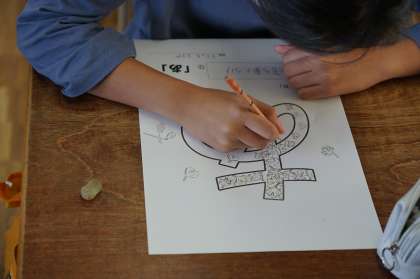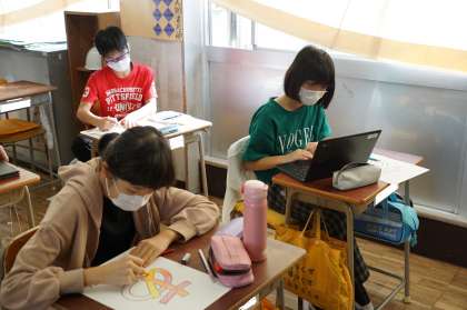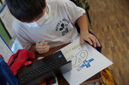 文字に色を塗るだけではなく、字や模様を入れています。発想が楽しいですね。