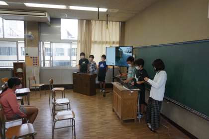 各グループが調べた内容を発表していきます。現場を調べ、まとめたものをスライドにして発表します。