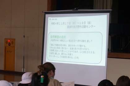 4,5年生合同で自然教室の説明会を実施しました。宿泊での自然教室は3年ぶりです。準備をしっかりして、行事を成功させましょう。