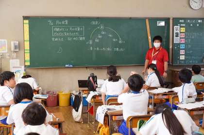 4年生理科の授業です。月の位置の単元です。月の動きについては分かってきたようです。満ち欠けについて興味が湧いてきました。