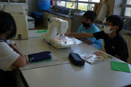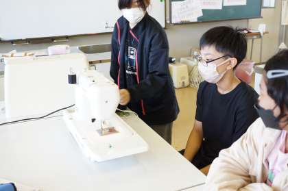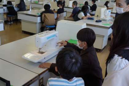 ミシン針の動く速さを調整しています。なんとなく分かってきたようです。
