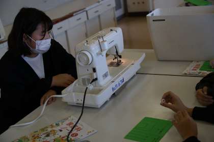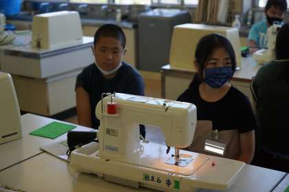 5年生家庭科の授業です。ミシンを扱います。ミシン針の動きを調整していきます。