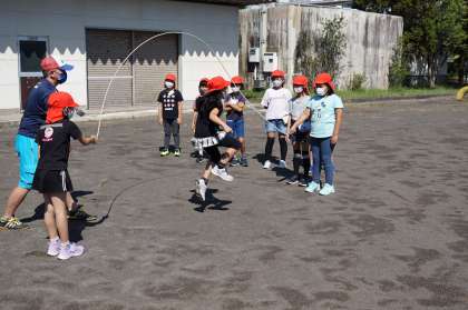 休み時間の様子です。8の字跳びの練習をしていました。だんだん跳べるようになっています。