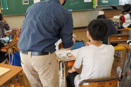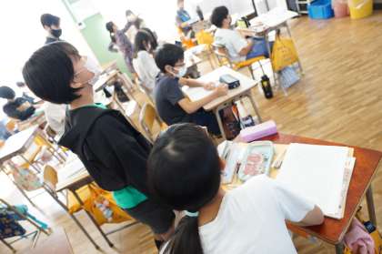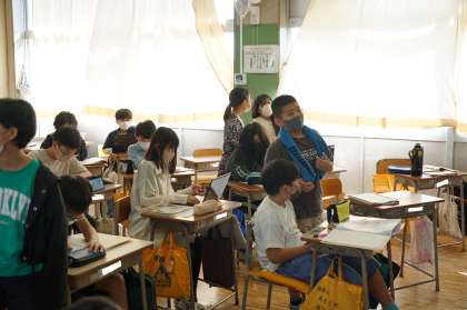 5年生英語の授業です。自分の生活について英語で紹介していきます。I (   ) (   ) at (    ). 最初の()には、always や usually 次の()には行うこと。最後の()には時刻を入れます。どんな文ができあがるでしょう。