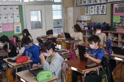 4年生算数の授業です。プリントが終了した子たちは、Chromebookを使って様々な学習をしていました。都道府県や体のつくりなど、いろいろなことに活用しています。