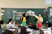 6年1組家庭科の授業です。トートバッグの作成です。ミシンで縫う子、手縫いの子などそれぞれの段階で作業の様子が違ってきます。