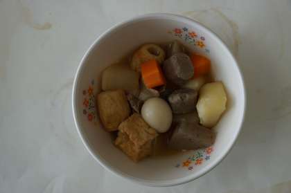 本日の献立は、さくらご飯、煮込みおでん、ごま入りおひたしです。さくらご飯や醤油や塩、みりんなどで味付けしたご飯です。煮込みおでんは鰹だしが効いていてとてもおいしいです。ごま入りおひたしはさっぱりとした味付けと歯応えがよくおいしいです。