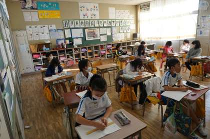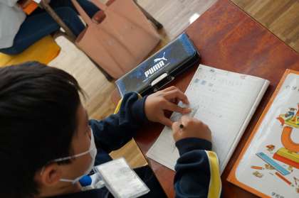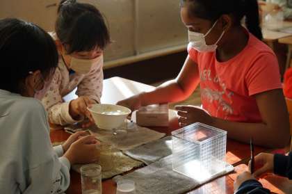 3年1組算数の授業です。「はした」のかさの単元です。1.8dLを図で表したり、測り取ったりします。