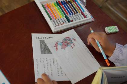 1年1組国語の授業です。自分がお勧めする本を紹介する読書郵便です。どんな本を紹介するのでしょう。