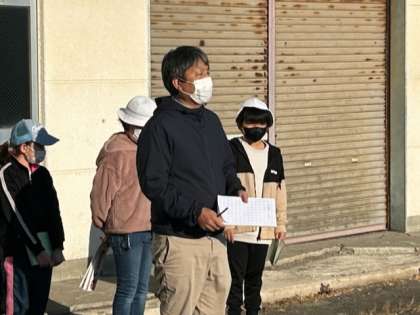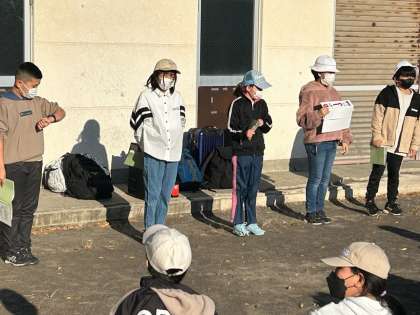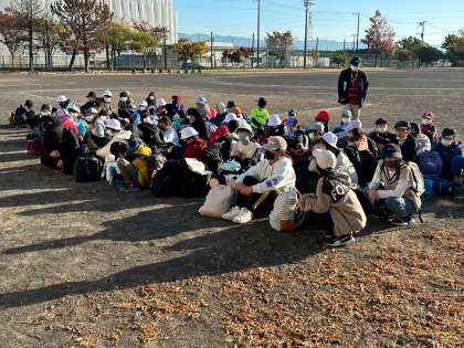 自然教室出発式です。健康観察、スロ-ガン発表に続いて教頭先生から激励の言葉をいただきました。これから出発します。