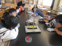 4年生書写の授業です。毛筆で「果物」を書きます。姿勢良く丁寧に書きます。