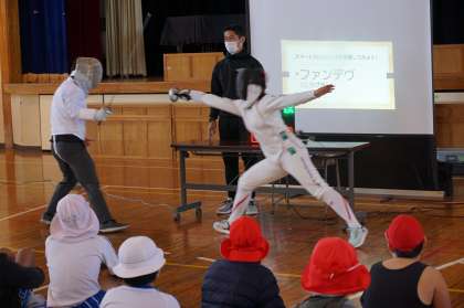 鈴木選手による基本動作の模範演技です。市役所の方はあっという間に点を取られてしまいました。