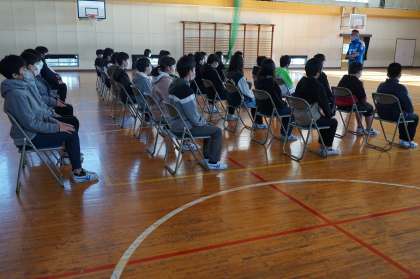 6年生卒業式の練習です。今日から始まりました。座席の位置や入場の仕方を確認していきます。