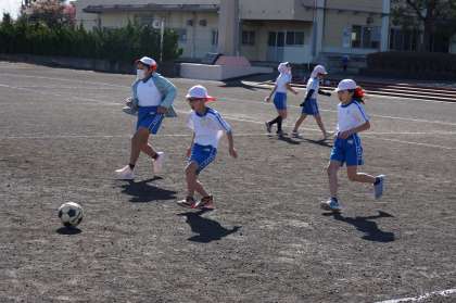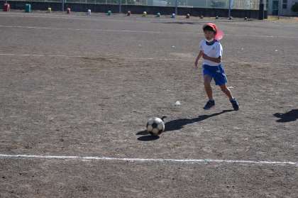 ドリブルやパスをつないで、相手ゴールを目指します。