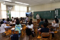 ビー玉に絵の具をつけて、さてどうするのかな? わくわくの瞬間です。