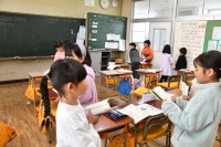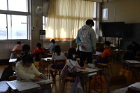 2年2組算数の授業です。時刻や時計の見方についての学習です。時計がないときに、何分後などをどのように考えればいいのか意見を出し合います。