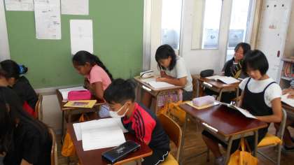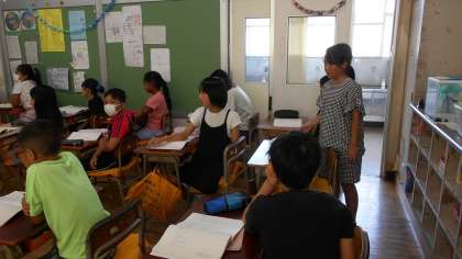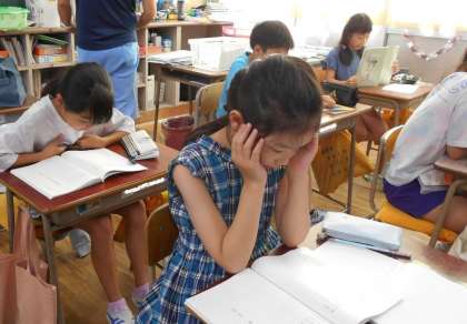 「かぼちゃのつるが」という詩を読みました。言葉からどんな感じを受けるか話し合い、それを生かしてもう一度音読してみます。