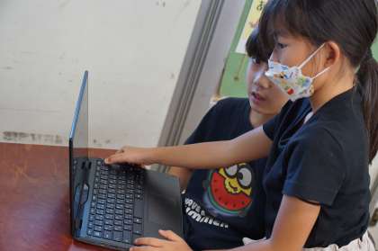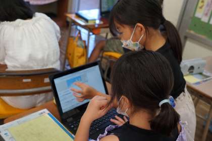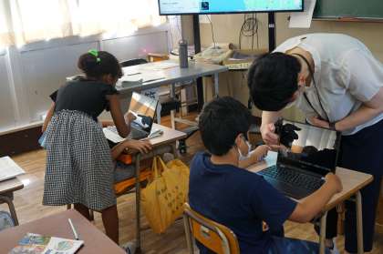 3年生社会の授業です。社会科見学で出かける西浦の選果場なついて調べていました。Chromebookを使って地図を使い、場所を調べます。