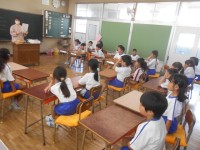 2年2組学活の授業です。「フェアな決め方」についての話し合いです。みんなが納得する決め方を考えています。