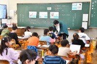1年生音楽の授業です。鍵盤ハモニカを弾いています。おとのばしょとゆびをおぼえようということで、楽しく演奏しています。