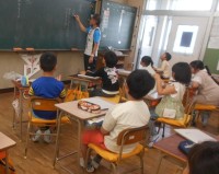 3年生音楽の授業です。「あの雲のように」という曲を演奏します。リコーダーと鍵盤ハモニカに分かれて演奏します。