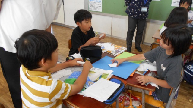 沼津のひものがどうして日本一なのか? ひもの工場でひものが作られる工程や出荷される様子から、その理由を見つけた子供たち。見つけたことをグループで分類してみました。