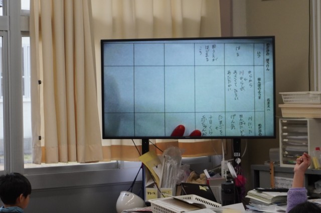 1年生国語の授業です。めだかのぼうけんの単元です。段落ごとの内容を確認しています。