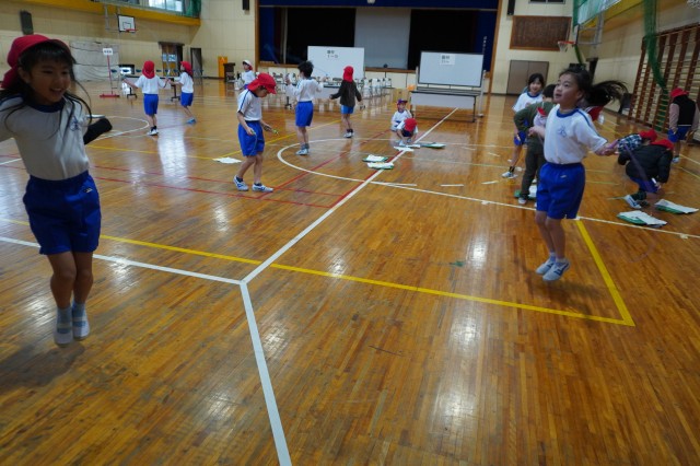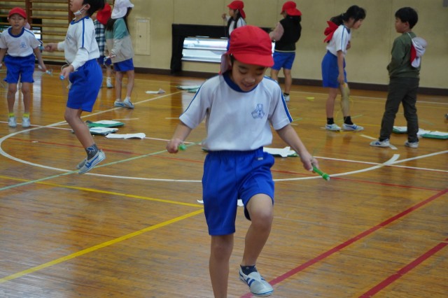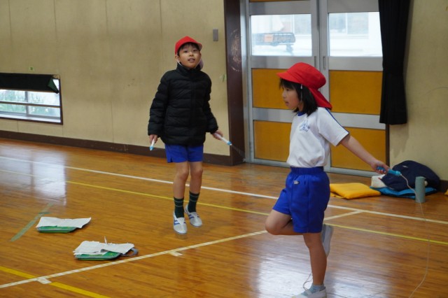 2年1組体育の授業です。縄跳び運動に取り組んでいました。頑張っています。