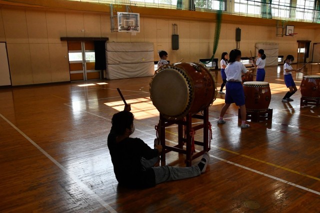 10月の秋祭り、11月の原地区文化祭に向けて、昼休みに太鼓クラブが練習を行いました。