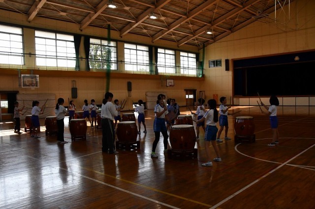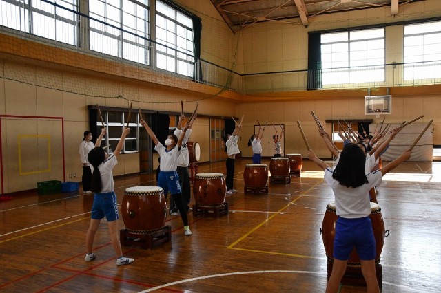 太鼓クラブでは、雁作太鼓だけでなく三宅太鼓も演奏できるように練習しています。久しぶりに太鼓のいい音が響きました。