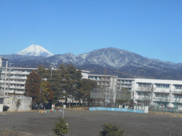 2学期最終日は、冬らしい空気の澄んだ晴天でした。富士山がとてもきれいに見えました。