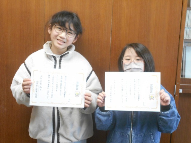 • 3月3日(火) 読書賞・完読賞 おめでとう!!