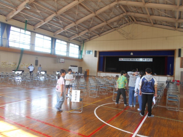 教室の飾り付けや配布物の確認、校内の掃除、式場となる体育館のセッティング、手際よくがんばってくれました。