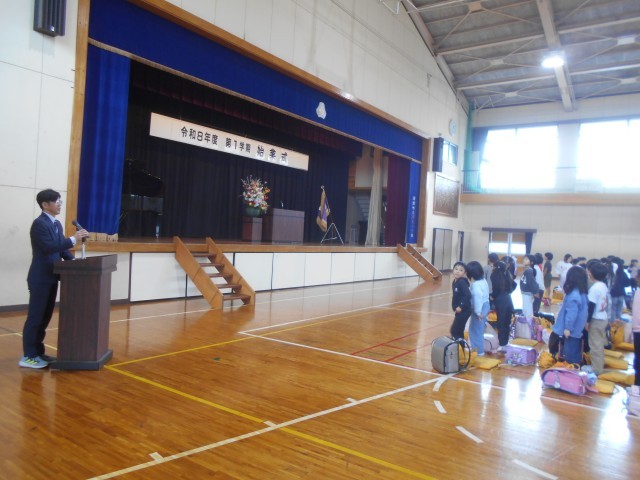 代表の人が、がんばったことを発表してくれました。一人一人が大きく成長した1年間でした。4月からは、新しい学年がスタートします。安全に気をつけ、楽しい春休みを過ごしてください。