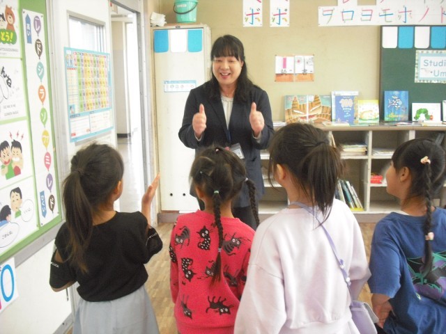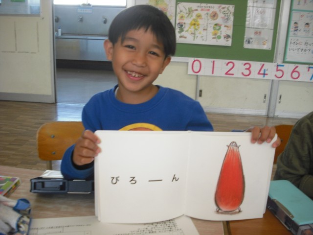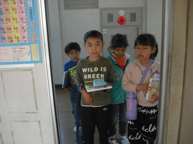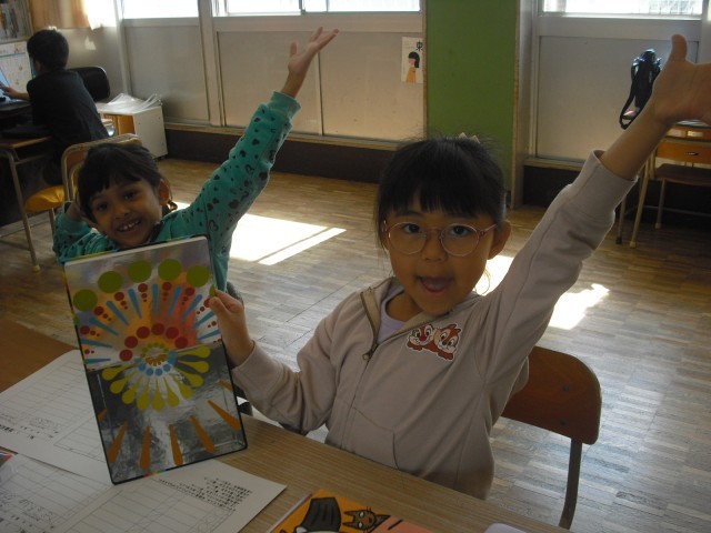 今日のお客様は、教務主任の先生です。低学年の児童は、今日読んだ絵本のおすすめのページを使い、クイズを先生に出しました。意外な答えに驚く先生の様子に満足げでした。さらに絵本に手が伸びて、選んだ絵本を次から次へ読みました。また、高学年が母語で朗読する姿を見て、来日前に培ってきた言葉の力に驚く場面もありました。プレゼンの力もぐんぐん伸びています。