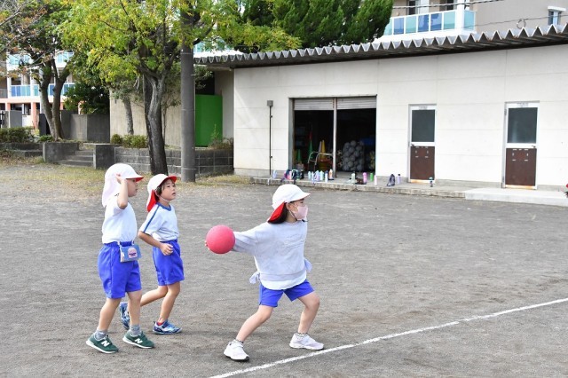 1年生 今日の体育はグラウンドでドッジボールです。 当てられないように全力で逃げます。 もし当たっても空気が抜けているのでいたくありません。 逃げるだけでなく、当てる方にも意欲満々。 進んでボールに関わっていく子供の姿が、たくさん見られました。