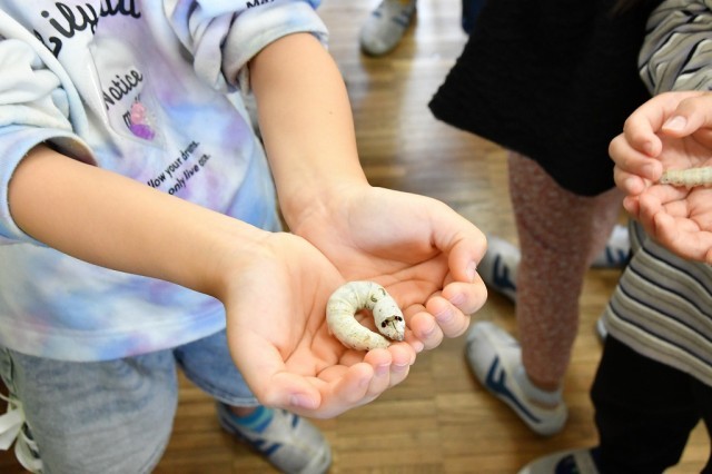 1年生 1年生の教室で育てているカイコです。 たまごからあっという間に大きく成長しました。 新幹線みたいな形をしています。 さわるとひんやり、つるつるです。 手の中で動く感触を楽しみました。