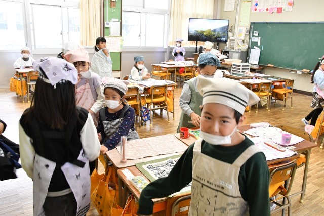 10月31日(金) 1年生 1時間目算数・給食の準備の様子- 公開日