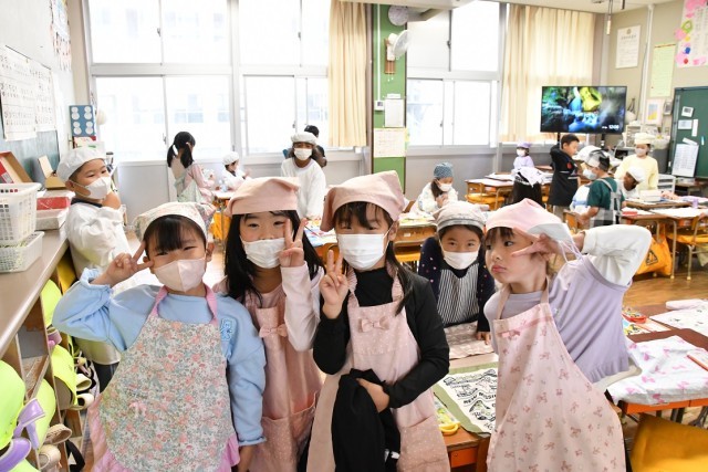 1年生 算数は、繰り上がりのあるたし算の学習に入ったようです。 給食は、素早くできていました。