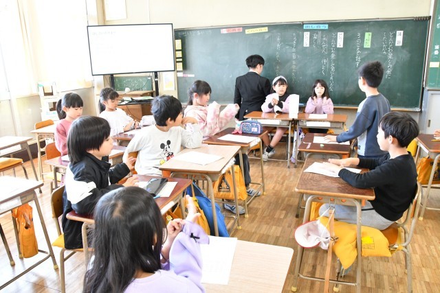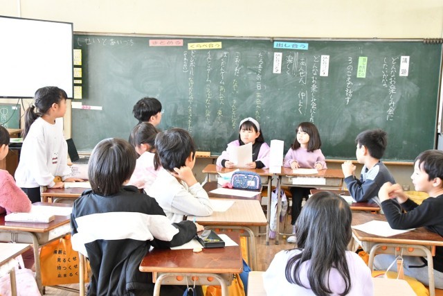 「どんなお楽しみ会にしたいかな」を議題に、先生が黒板書記、子供たちが司会を行いながら、しっかり話し合いを行っていました。一人一人が自分の意見をプリントにしっかり書いており、みんなに伝えることができました。