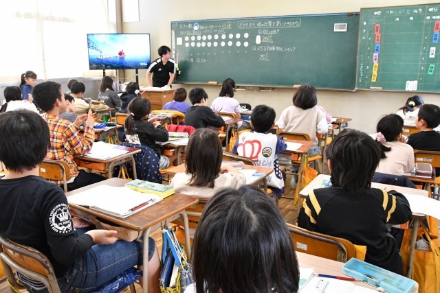 ALTと担任のやりとりに対して、集中して耳を傾ける子供の姿が見られます。