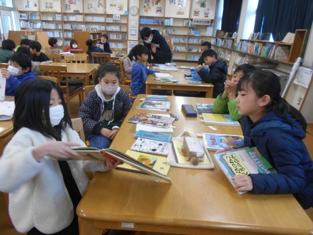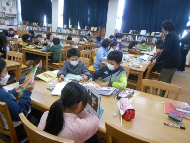 本を紹介する方法の一つに、ブックトークがあります。本来は、テーマを決めて複数の本を紹介しますが、今日は1~2冊に絞り、友達にその本の面白さを伝えるためにはどうしたらいいのかを学習問題に本の紹介に挑戦しました。読書指導の専門家、小谷田先生が授業を行ってくださいました。今日は1分間で練習をしました。どんどん上手に話す3年生。1分間がすぐに終わってしまいました。よい点や改善点を見付けて次にまたチャレンジです。 -