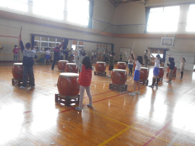 しっかり話を聴いて、真剣に取り組む3年生。はじめから音がそろっていたと林先生も太鼓判を押してくれました。4年生での雁作太鼓が楽しみです。